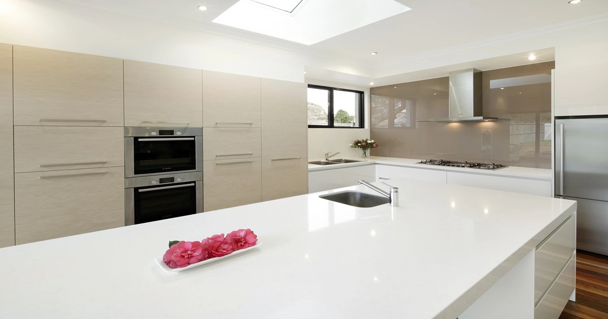 Nằm trong dòng sản phẩm màu trắng, sản phẩm đá Vicostone Onyx White tạo nên sự khác biệt bằng những bond xuất hiện ẩn trên toàn tấm.