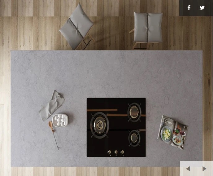 Lấy cảm hứng từ đá cẩm thạch tự nhiên, sản phẩm Vicostone Monterosa độc đáo với hiệu ứng vân rối màu tối xuất tiện trên bề mặt nền xám mạnh mẽ.