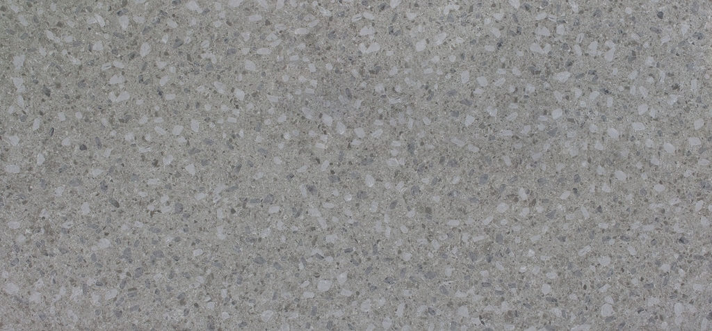 Lấy cảm hứng từ vẻ đẹp hoài cổ của các thiết kế Terrazzo và dòng đá tự nhiên Ceppo Di Gre, sản phẩm đá Vicostone Ceppo Di Gre mang phong cách terrazzo looking, phối hợp hài hòa các cục/tảng kích thước trung bình nhiều màu sắc trung tính thiên về tone xám trên bề mặt xám tối.