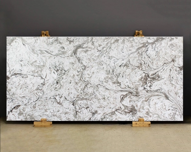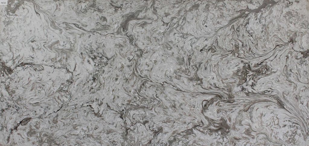 Sản phẩm đá Vicostone Avalanche độc đáo với những đường vân xám điểm xuyết màu nâu đậm vần vũ, hoà quyện vào nhau tạo thành những vòng xoáy như những con mắt bão cùng hiệu ứng chuyển tiếp nhẹ nhàng và tự nhiên giữa vân và nền đá.