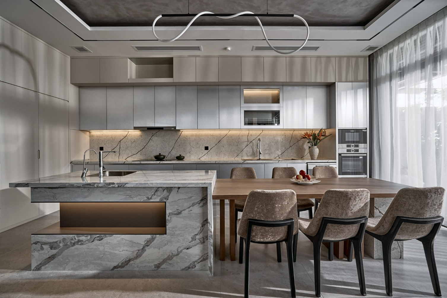 Bề mặt đá sáng bóng, liền mạch, dễ vệ sinh và bền đẹp theo thời gian - là lựa chọn lý tưởng cho các căn hộ cao cấp tại trung tâm thành phố