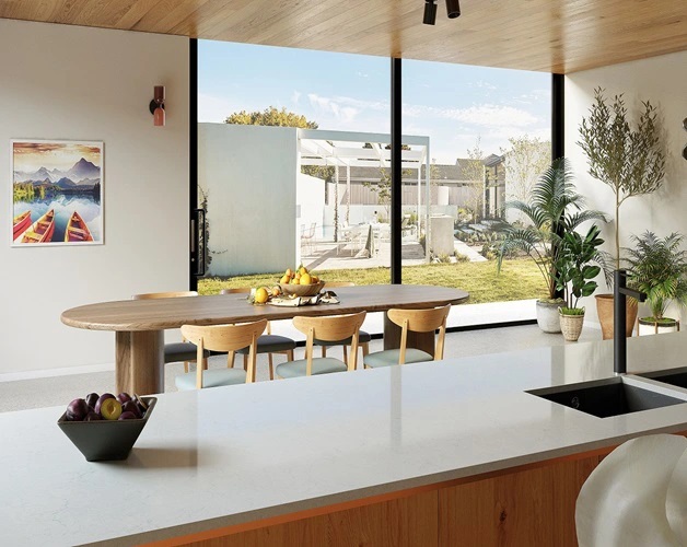 VICOSTONE Valley Green BQ2608 độc đáo với những đường vân mỏng mang sắc xanh rải rác trên nền đá cẩm thạch trắng nhạt, như những dải cực quang tuyệt đẹp thắp sáng bầu trời.
