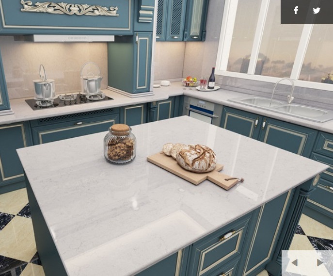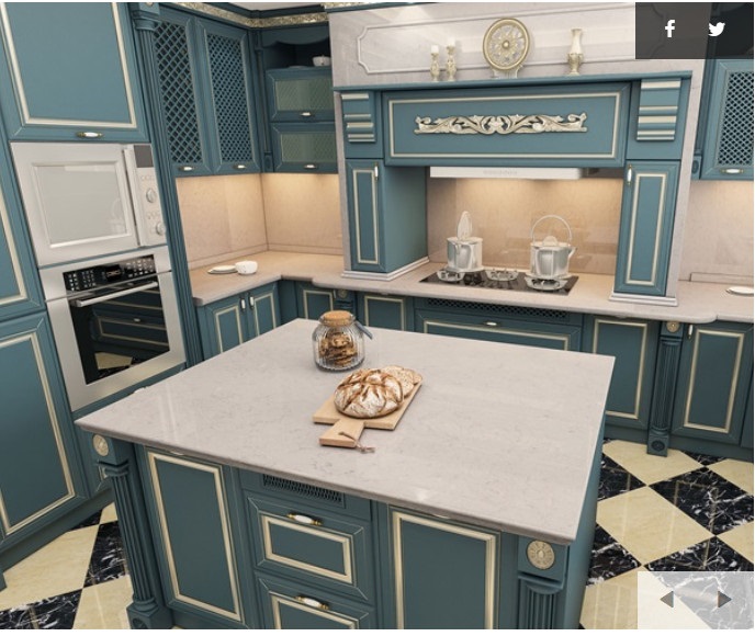 Lấy cảm hứng từ đá cẩm thạch tự nhiên, sản phẩm Vicostone Ceres độc đáo với hiệu ứng vân rối màu vàng nâu xuất tiện trên bề mặt nền xám nhạt tinh tế.